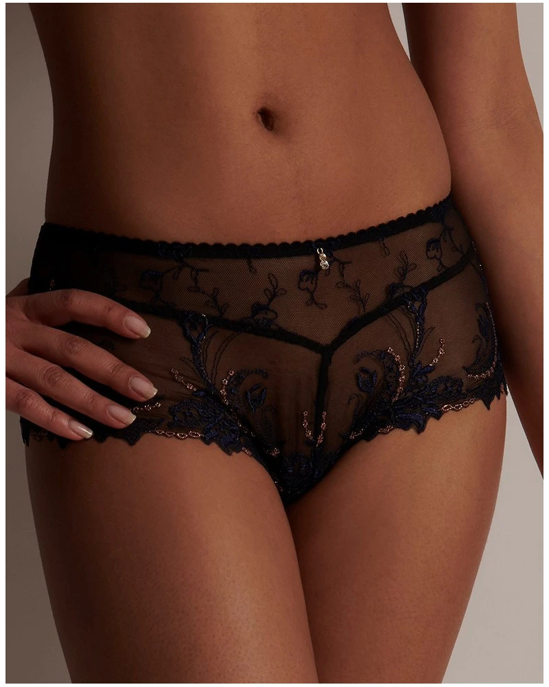 La culotte Saint Tropez de la collection Amour Précieux assure confort et douceur de par ses matériaux de grande qualité. il offre un look chic et sexy avec sa coupe échancré et son jeu de transparence de la matière.