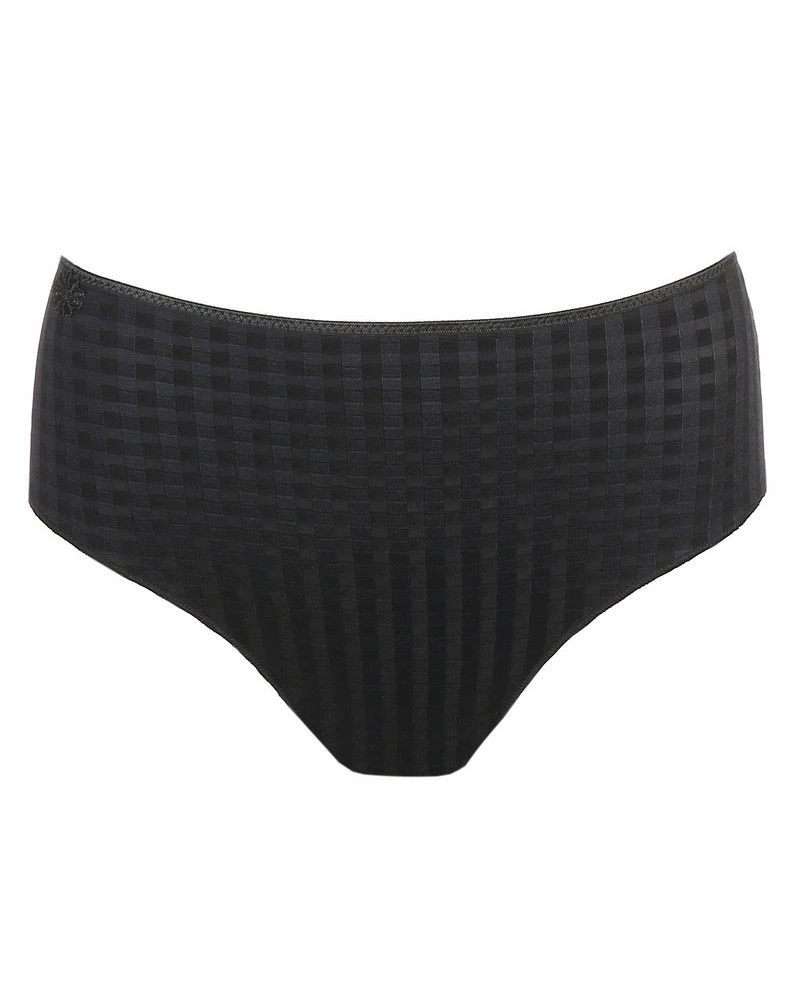Ce slip Marie Jo monte haut sur la taille et enveloppe entièrement les fesses. Entièrement opaque, orné de la broderie florale à la taille et à l’échancrure.