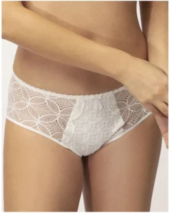 La culotte Taille Haute Opaline de la marque Simone Pérèle propone une transparence raffinée combinée à une broderie délicate.