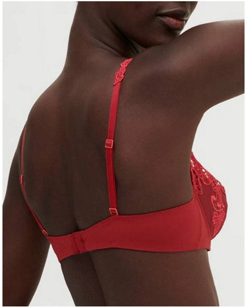Le soutien-gorge corbeille de la collection Saga est très sensuel et confortable. Il possède des bretelles ornées de guipure et galon brodé aux bonnets pour un charme irrésistible.