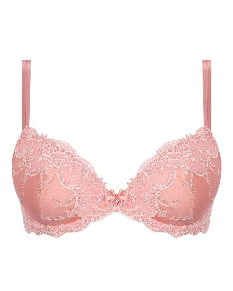 Le soutien-gorge coque de Lise Charmel procure une poitrine galbée et arrondie. Les bonnets en satin de soie sont incrustés d’une broderie sur tulle. Un délicat nœud de satin accompagné de son bijou strass Swarovski sont situés à l’entre-seins, pour plus de sensualité et de glamour. Coques progressives pour les bonnets A et B, coque light pour les bonnets C et D.