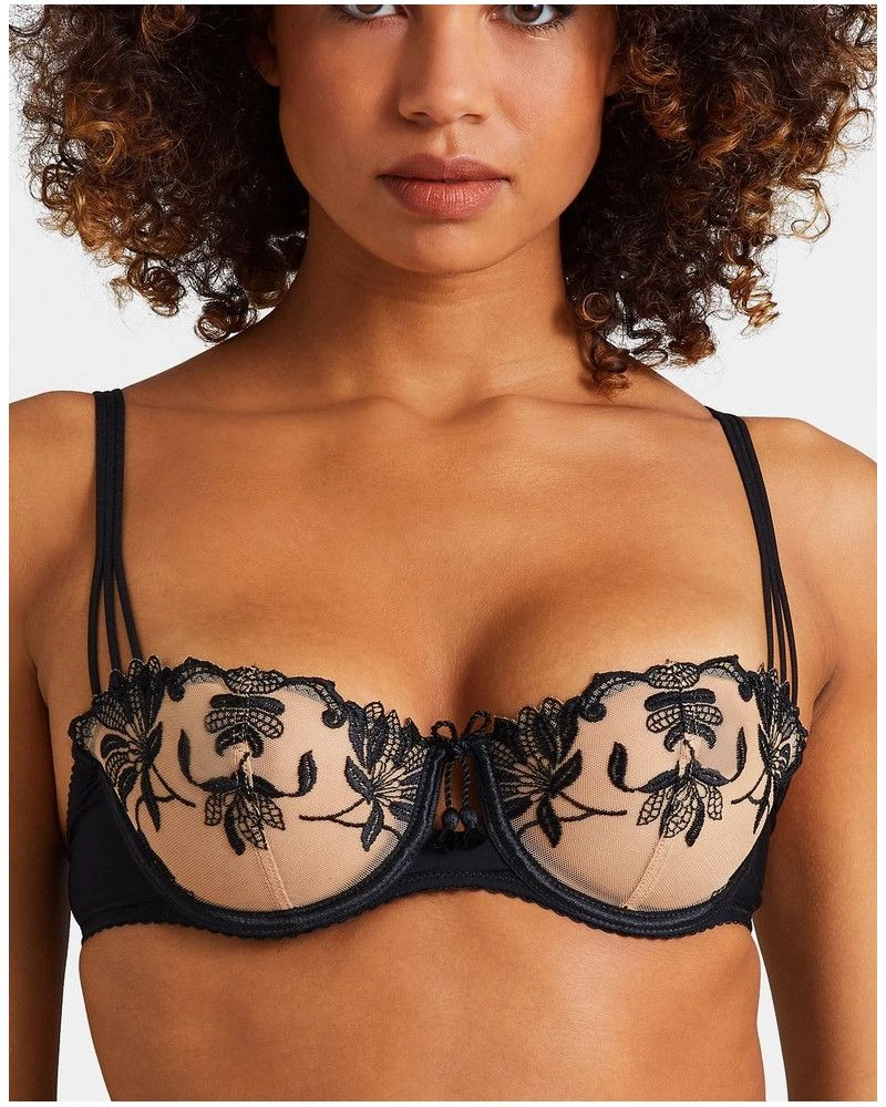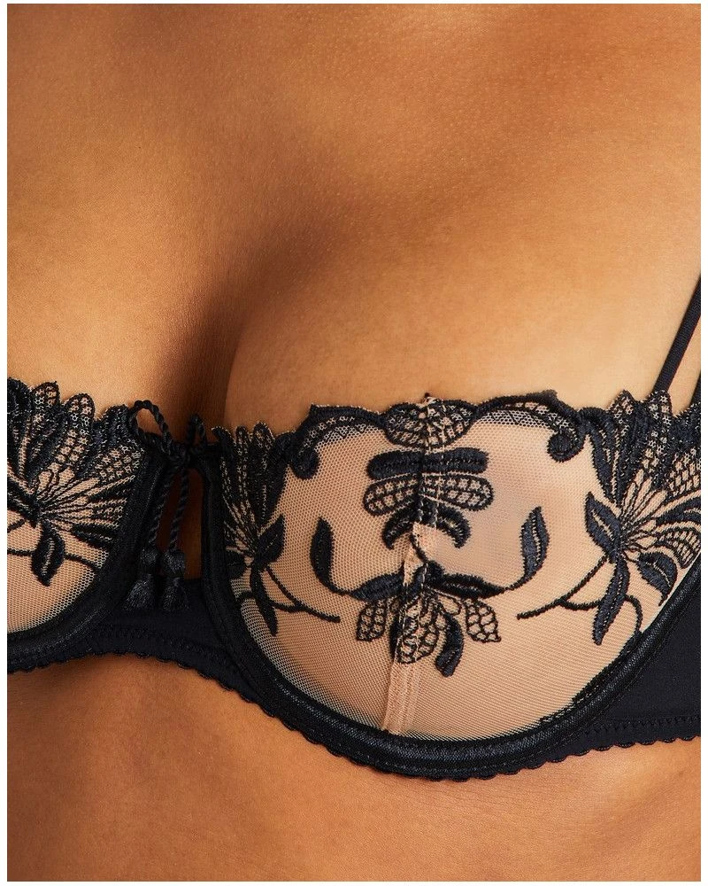 Le soutien-gorge corbeille Lovessence de la marque de lingerie Aubade propose une forme valorisante et délicate, agrémentée d’une broderie florale ravissante.