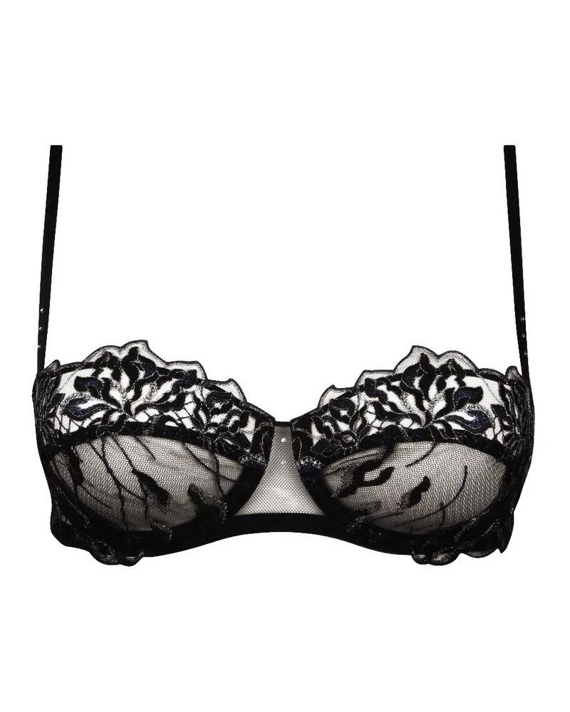Le soutien-gorge corbeille de la collection Les Nuits Chics de Lise Charmel offre une broderie raffinée pour une matière brillante et très douce pour un look sensuel et confortable.