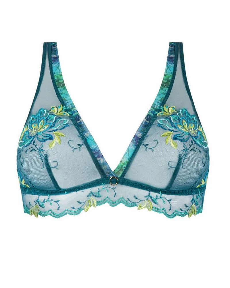 Le soutien-gorge triangle de Lise Charmel procure un porté naturel et agréable. Les bonnets en satin de soie sont incrustés d’une broderie sur tulle. Sa coupe moderne illuminée par des bijoux dorés met en valeur les courbes féminines, pour plus de sensualité et de glamour.
